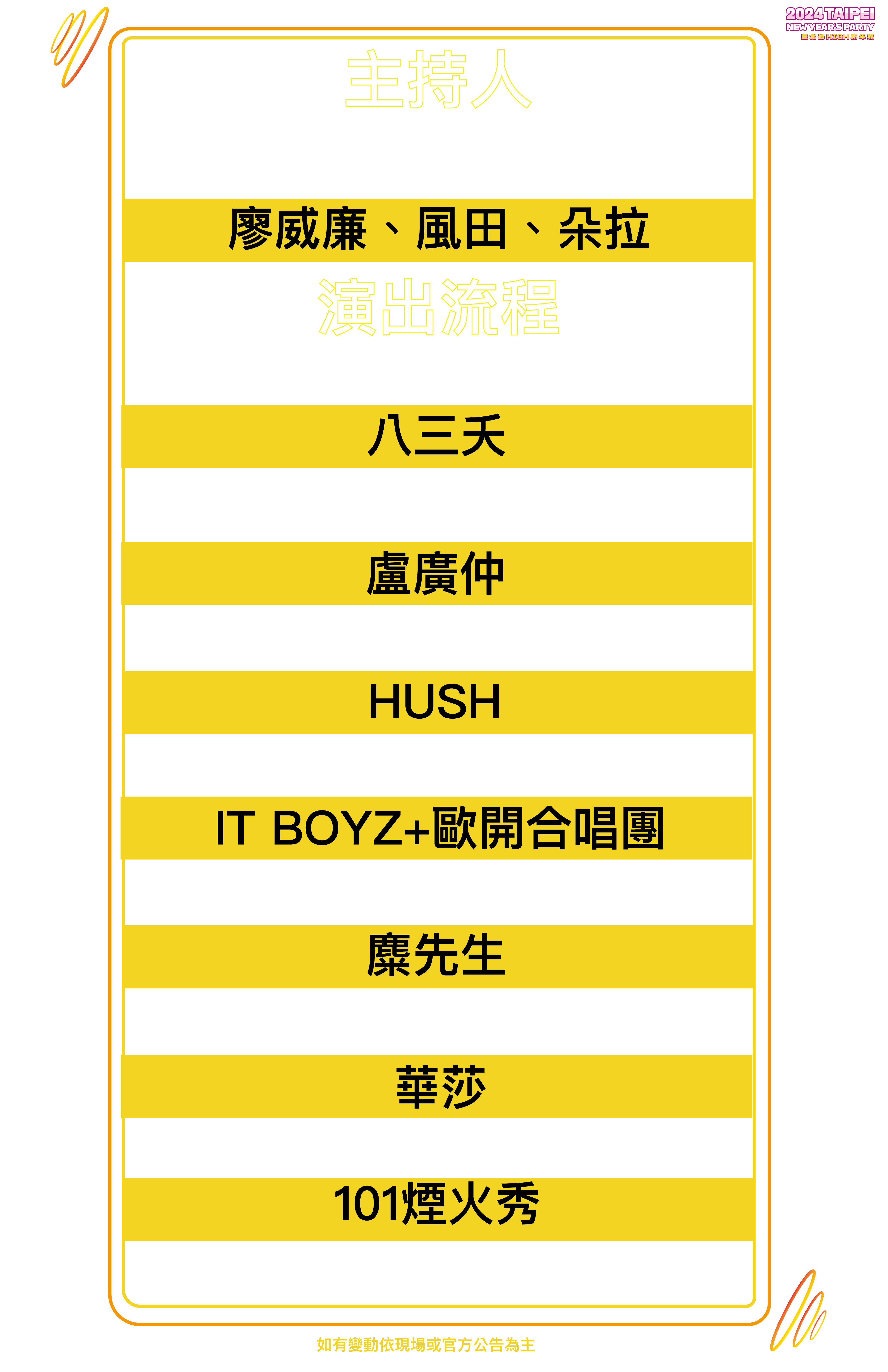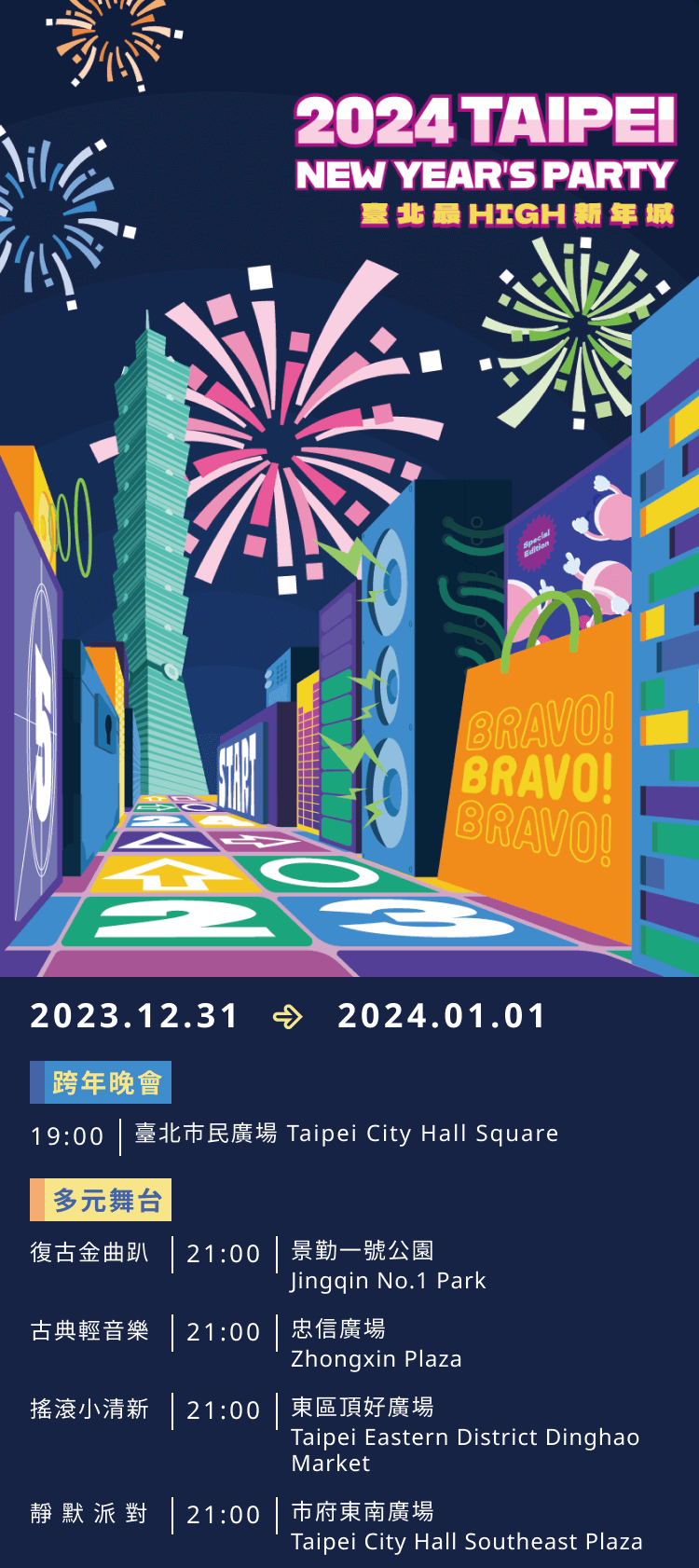 (1)10:05-10:45a.m. 信義區-臺北101:2024臺北最High新年城起跑記者會